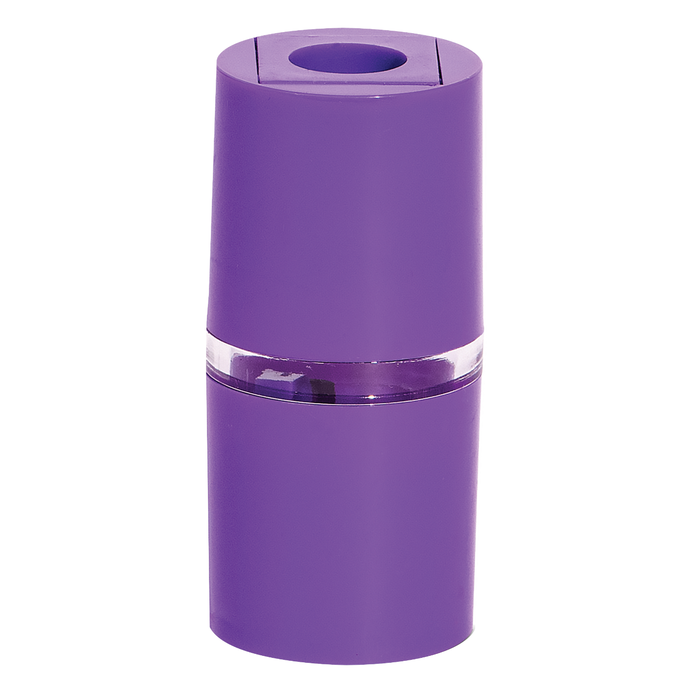 Sacapuntas cilíndrico de doble cara para lápices de maquillaje grandes y pequeños, viene con recolector de virutas.
