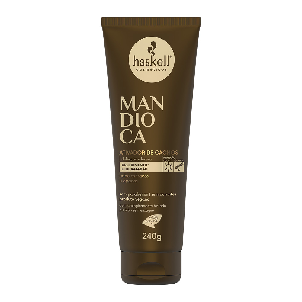 El Activador de Rizos Mandioca de Haskell define, hidrata y da forma a los rizos sin apelmazar. Su fórmula con vitamina E, aceite de coco, girasol y aguacate retiene la humedad natural, previene el frizz y mantiene los rizos suaves, brillantes y con movimiento.